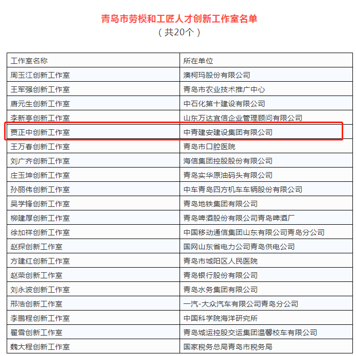 【建安新聞】集團工匠創(chuàng)新工作室獲評“青島市勞模和工匠人才創(chuàng)新工作室”